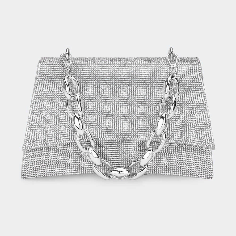 Pleated Handle Detailed Bling Rectangle Evening Tote Bag