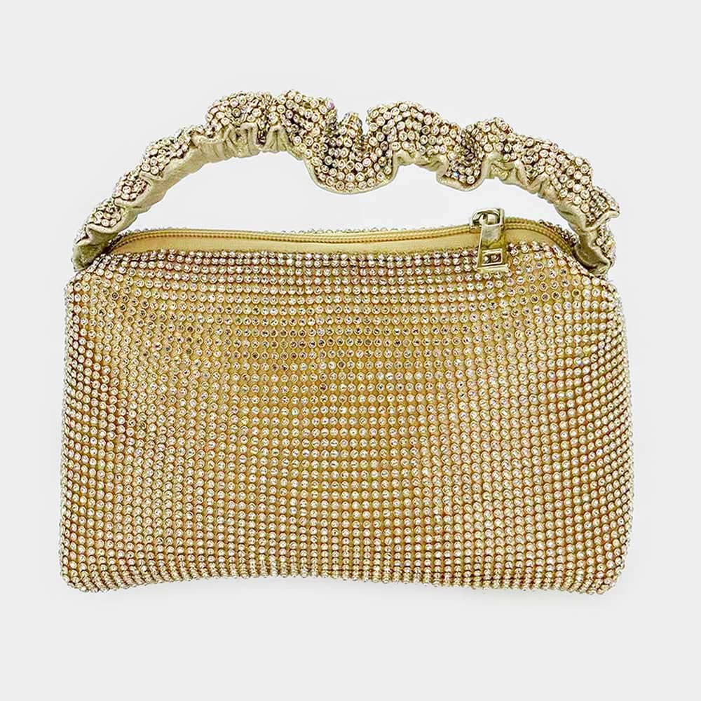/ Pleated Handle Detailed Bling Rectangle Evening Tote Bag