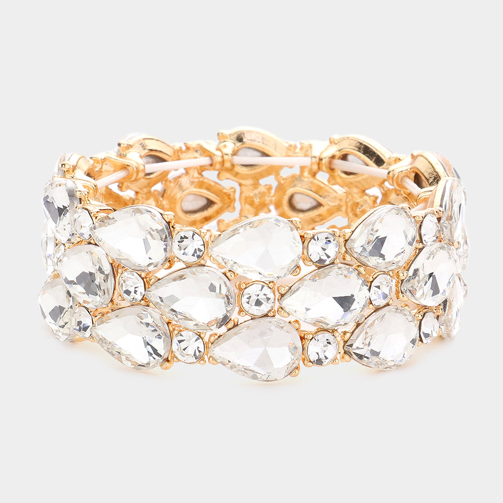 / Teardrop Stone Cluster Stretch Evening Bracelet
