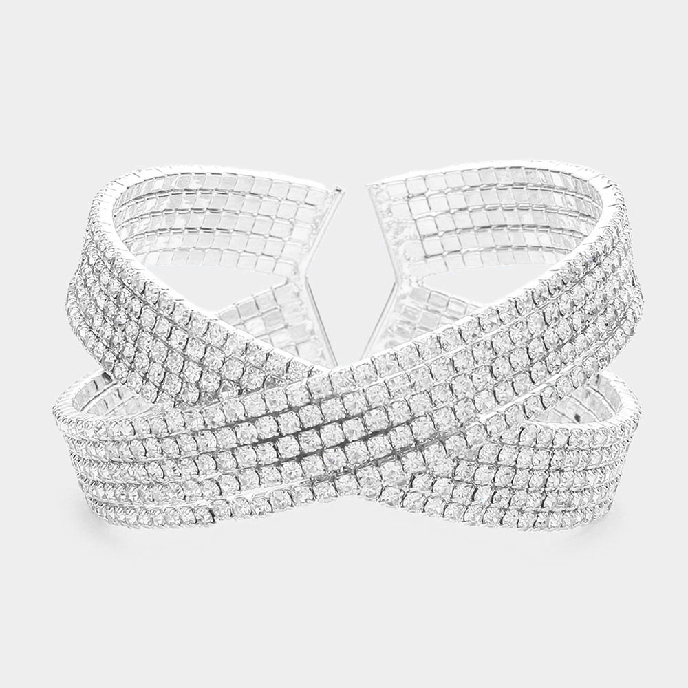 Crisscross Crystal Rhinestone Pave Cuff Bracelet