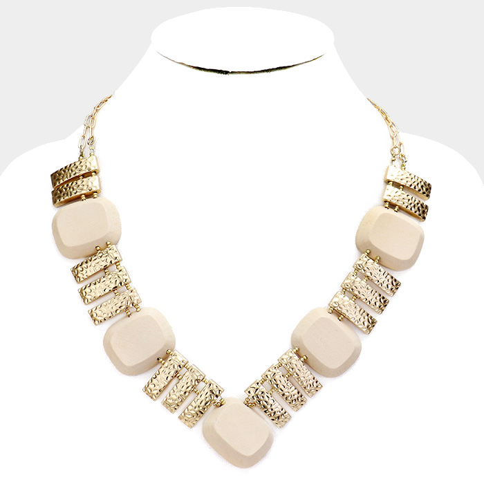 / Hammered Bar Wood Bead Collar Statement Necklace