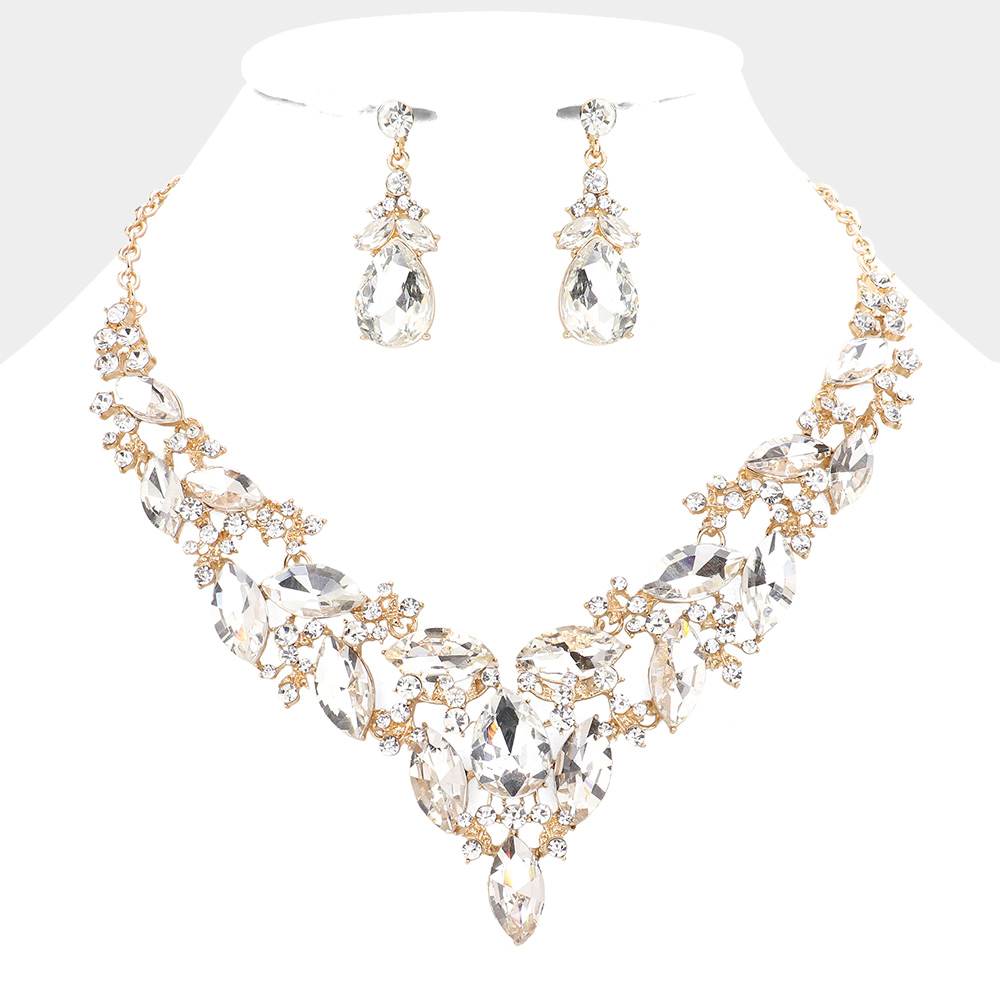 / Marquise Stone Cluster Evening Necklace