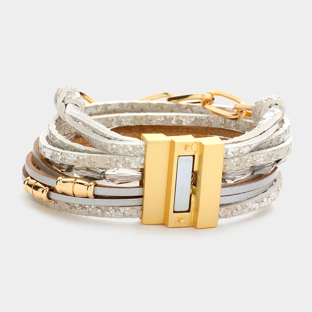 Open Metal Oval Link Faux Leather Magnetic Bracelet