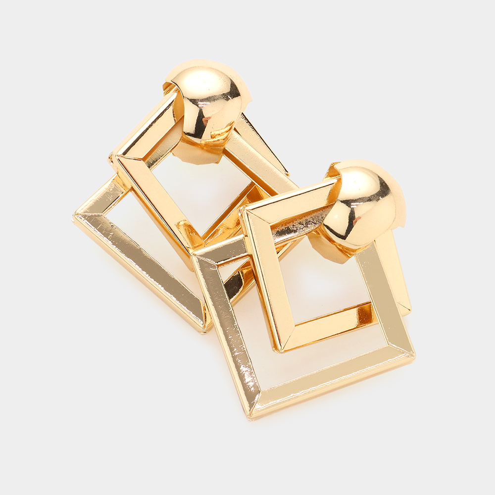 Double Open Metal Square Link Earrings