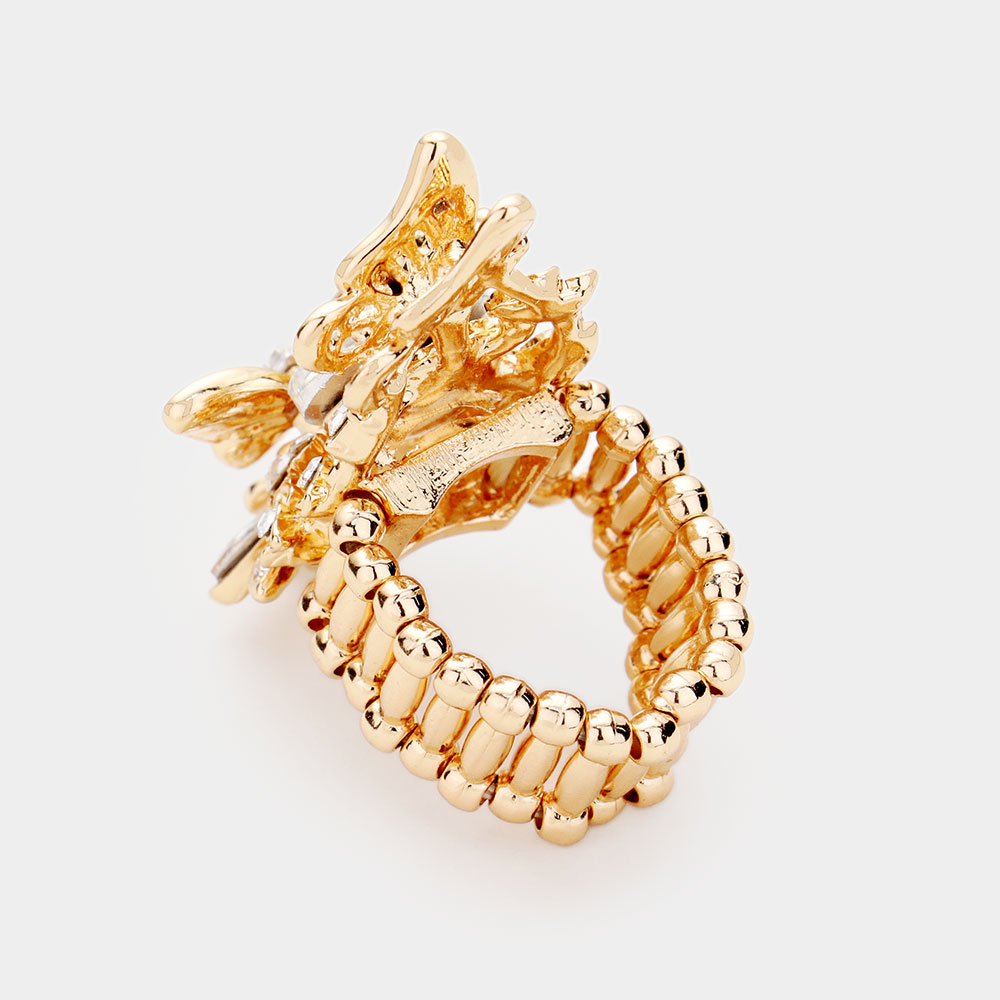 / Crystal Pave Floral Butterfly Stretch Ring